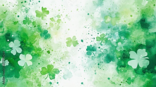 Fototapeta premium a vibrant watercolor illustration of shamrocks scattered across a lush green...
