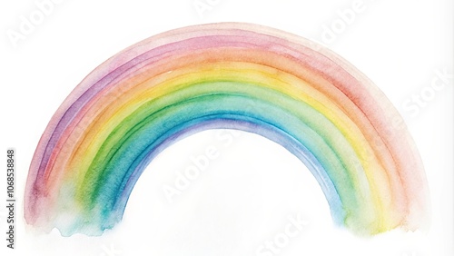 Obraz premium A vibrant watercolor rainbow arc painted with soft, delicate hues, showcasing a gentle transition of color bands
