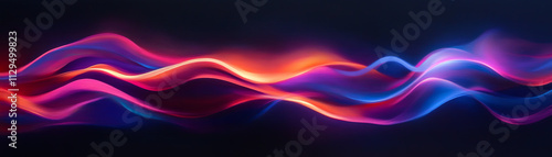 © Alex, Naklejka premium A vibrant wave of colorful light flowing smoothly across a dark background.