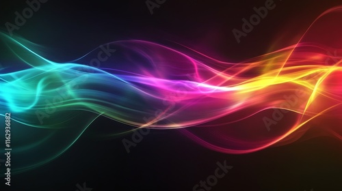 © Matthew, Obraz premium A vibrant wave of colorful light patterns flowing against a dark background.