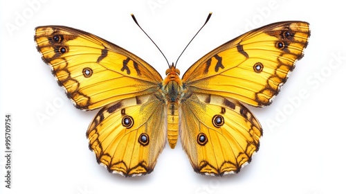 © PLATİNUM, Fototapeta premium A Vibrant Yellow Butterfly Perched With Open Wings on a White Surface