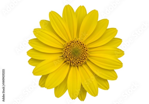 Fototapeta premium A vibrant yellow flower with a detailed center on a clean white background...