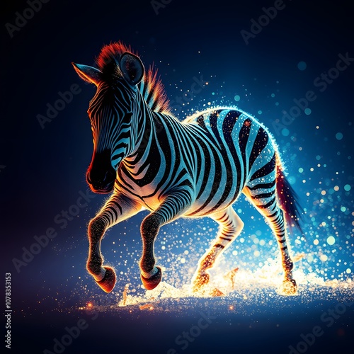 Fototapeta premium A Vibrant Zebra Transforming Into Particles with Glowing Effects for Creative Visuals and Abstract Art Projects