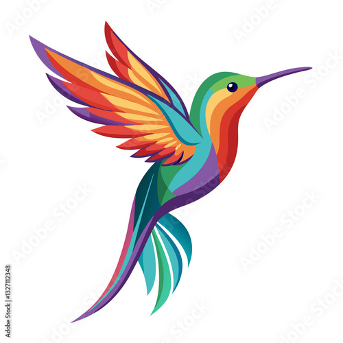 Obraz premium A vibrantly colored hummingbird in flight, depicted in a stylized isolated...