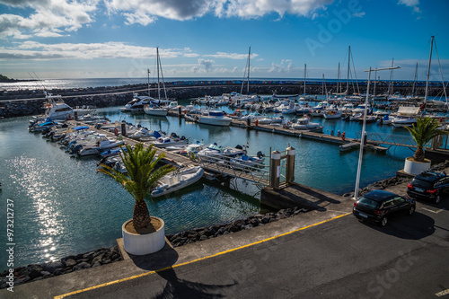 © Nicola, Fototapeta premium A view across the marina in San Roque on the island of San Miguel in the Azores in summertime