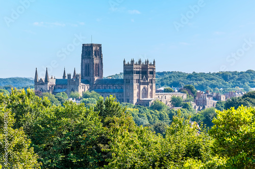 © Nicola, Naklejka premium A view across the treetops towards the Cathedral in Durham, UK in summertime