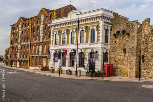 Naklejka premium A view along the Town Quay road in Southampton, UK in Autumn
