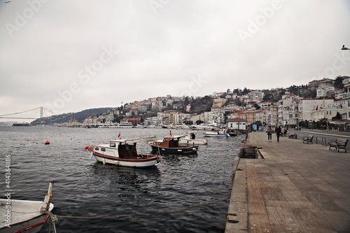 © ceyda, Fototapeta premium A view from Bosphorus street with bridge and ships