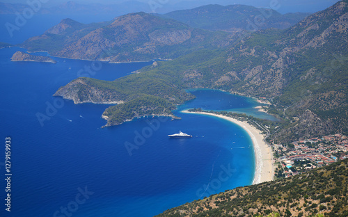 © sinandogan, Naklejka premium A view from Oludeniz in Fethiye, Turkey.