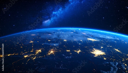 Fototapeta premium A view from space showcasing the Earth's illuminated continents, bathed in...