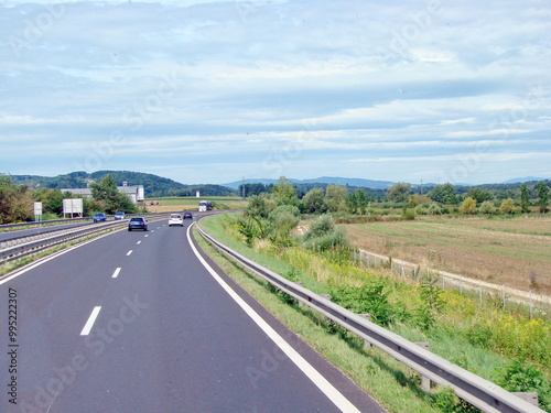 © Hennadii, Fototapeta premium A view from the car window at the sky, which is quickly covered by a carpet of clouds.
