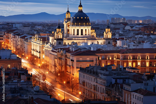 © Golib Tolibov, Obraz premium A view of a city at night from above created with generative AI technology