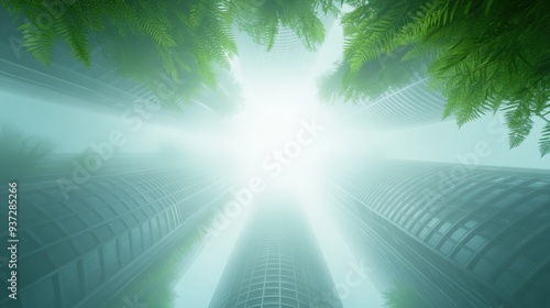 © Natthakan, Fototapeta premium A view of a city with tall buildings and a clear blue sky