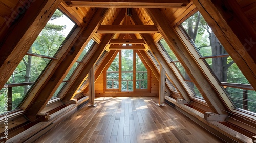© QAISAR, Obraz premium A view of a just lately constructed home's a frame attic