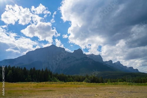 © Joseph Richardson/Wirestock Creators, Fototapeta premium a view of a mountain with some trees and mountains behind