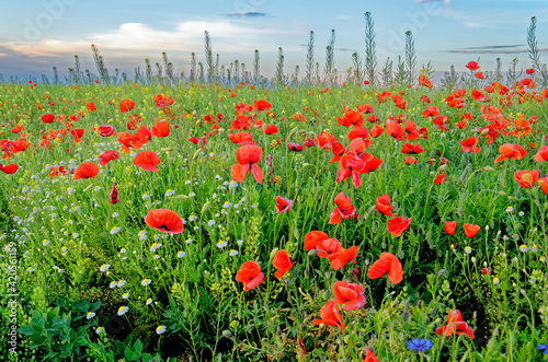 © adfoto, Fototapeta premium A view of a Poppy field in countryside - Romania