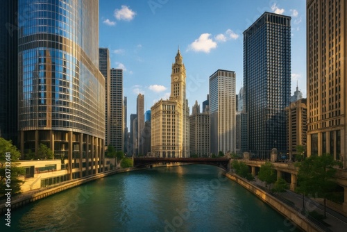 © Viktor, Fototapeta premium A view of a river running through a city with tall buildings