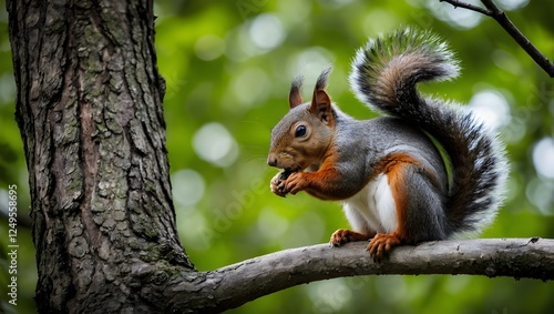 © Igor, Fototapeta premium A view of a squirrel sitting on a tree