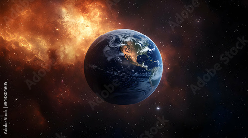 Fototapeta premium A view of Earth from space against a backdrop of stars and a nebula.