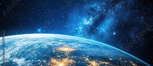© instock, Obraz premium A view of Earth from space, showcasing the planet's surface and cosmic backdrop.