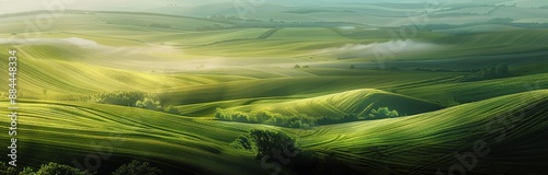 © Nanda, Obraz premium A view of green grasslands in the hills