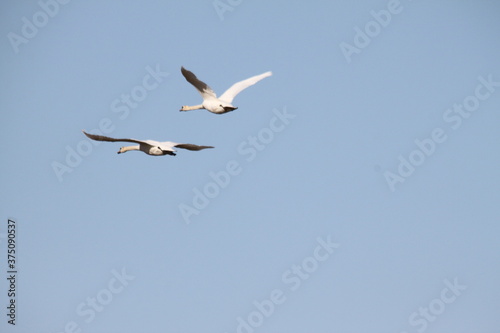 Obraz premium A view of Mute Swans in flight