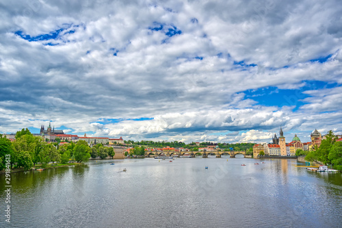© Jbyard, Obraz premium A view of Old Town Prague and the Charles Bridge across the Vltava River in Prague, Czech Republic.