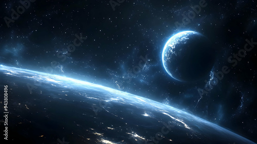 © Siasart Stock, Obraz premium A view of planet Earth with a bright blue moon in the background.