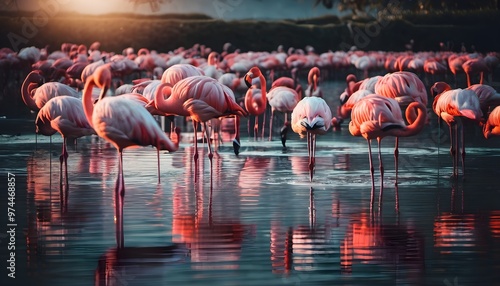 © Simon Edge, Naklejka premium A view of some Flamingos in the water