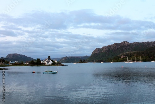Fototapeta premium A view of the beautiful small Scottish highlands town of Plockton, with...