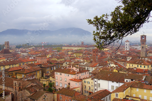 © Anna Zayka, Obraz premium A view of the city Lucca in a rainy day