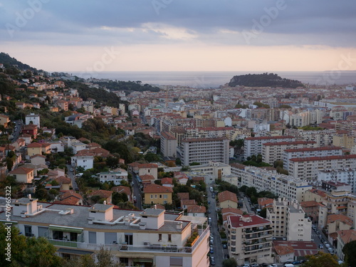 Obraz premium A view of the city of Nice during a sunset. the 25th October 2021, Nice, France;