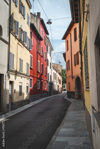 © Ernest_Kucher, Fototapeta premium A view of the colorful streets of Milan. Windows with flowers. Italy