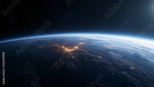 © Bruno Adachi, Obraz premium A view of the earth from space at night.