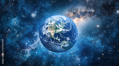 Fototapeta premium A view of the Earth from space, showing the curvature of the planet and the Milky Way in the background