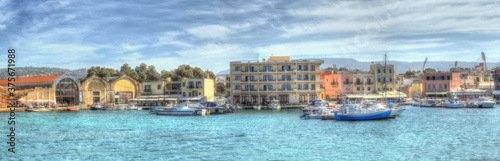 © Nicola, Obraz premium A view of the entrance to the main harbour and marina in Chania, Crete on a bright sunny day