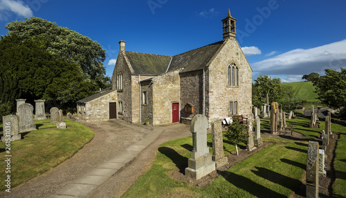 © Fulcanelli, Fototapeta premium A view of the graveyard and church building in Aberlemno in Angus, Scotland.