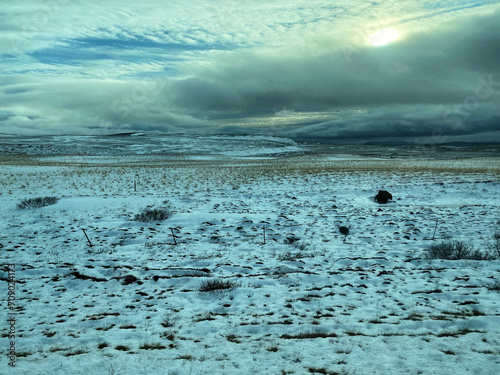 Fototapeta premium A view of the Iceland Countryside in the winter covered with Snow and Ice