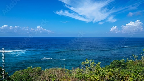Fototapeta premium a view of the ocean from a hill top with a blue sky