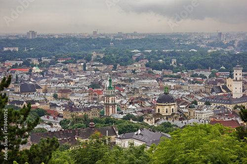 © tillottama, Fototapeta premium A view of the old city from a height overcast summer day. Lviv, Ukraine.