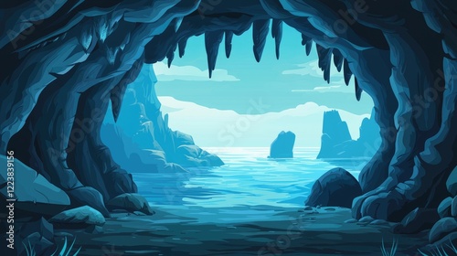 Fototapeta premium A View of the Sea Through a Cave Entrance