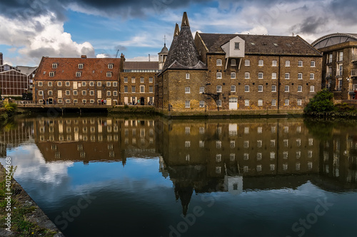 © Nicola, Obraz premium A view of the Three Mills, part of the oldest tidal mills complex in the world in Lee Valley, London in the summertime