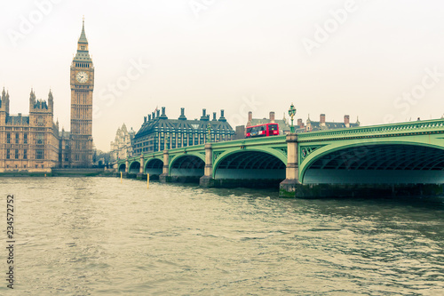 Fototapeta premium A view of Westminster Bridge and the Houses of Parliamentfrom the south bank of the River Thames