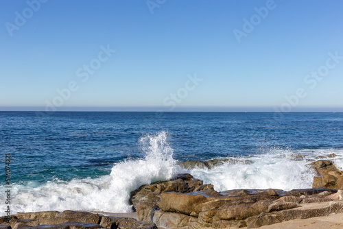 © Polina Korchagina, Fototapeta premium A view on the ocean with the rocks and waves
