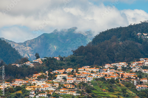 Naklejka premium A view over the roof tops of buildings in Funchal, Madeira