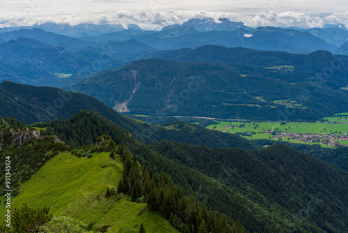 © Wolfgang Hauke, Fototapeta premium A view to the green Chiemgau nature while hiking