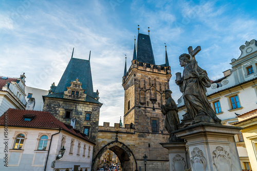 © Nicola, Fototapeta premium A view towards the west side of the Charles Bridge in Prague in springtime