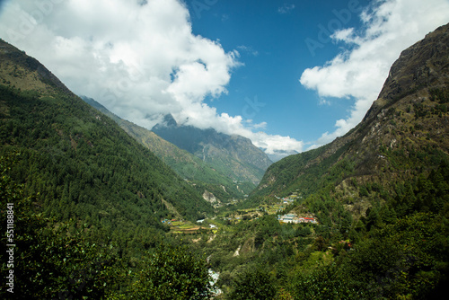 Naklejka premium a village among the valley in himalayas