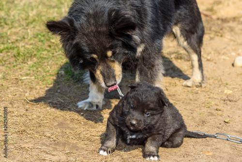 Fototapeta premium A village dog is played with a puppy.