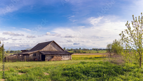 © Ольга Копьёва, Obraz premium a village house in a field. Russian hut